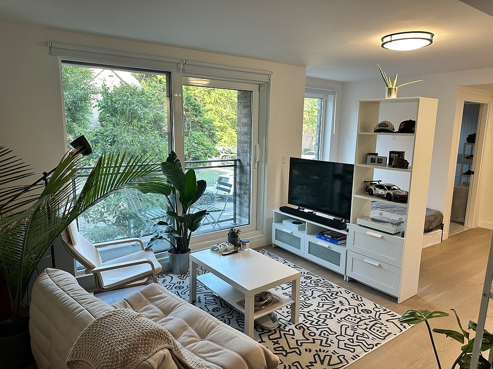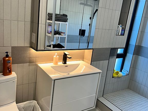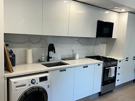 This studio apartment, nestled within a newly constructed building in Midwood, epitomizes modern urban living with its efficient design and thoughtful amenities. Step inside to discover a space illuminated by large windows that invite natural sunlight, creating an airy and inviting atmosphere throughout. The apartment features a compact yet functional kitchen equipped with modern appliances, complemented by a convenient in-unit laundry setup, offering both practicality and convenience for daily living. A small balcony extends the living space outdoors, perfect for enjoying a morning coffee. Residents of this building enjoy access to a range of amenities designed to enrich their lifestyle. A rooftop deck provides panoramic views and a serene setting for relaxation or social gatherings. A fully equipped gym caters to fitness enthusiasts, while bike storage accommodates those who prefer two-wheeled transportation. While parking is not available with the unit, this unit has a no-pets policy ensuring a tranquil and allergen-free environment. In summary, this studio apartment offers a blend of comfort, convenience, and modern amenities, making it an ideal choice for those seeking a stylish urban retreat in a vibrant community.