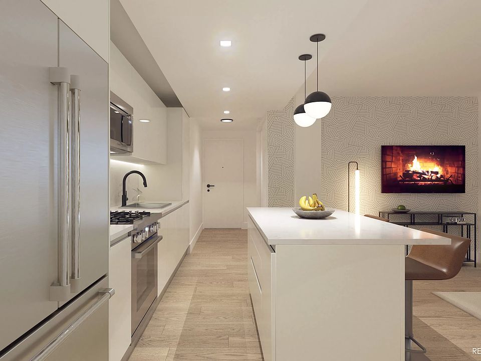 All showings are done at an off-site showroom and are by appointment only. Welcome to H7 Condominium! Located at 623 Ave H, on the corner of Avenue H and E 7th Street. This amazing and luxurious new condominium offers 38 breathtaking residences, varying from Studios to 2 Bedroom units, most of which have private outdoor spaces for your convenience and leisure. Unit 5E at H7 Condominium is an inviting 2-Bedroom 2-Bathroom with its own private outdoor space. As you enter this unique layout you will find the open kitchen that is defined by a waterfall peninsula and is illuminated by two pendant light fixtures. Both bedrooms are generous in size and offer ample amounts of closet space. The primary bedroom has two double door closets that leads to the en-suite bathroom. With south facing exposure, this unit bathes in sunlight throughout the day. Interiors: The generous and airy layouts are brightened through the awe-inspiring oversized windows that flood the units with natural light. The units are topped off with rich 7.5-inch European Oak hardwood floors, modern base moldings, and finished doors. All residences are equipped with a Washer and Dryer. Kitchens: Custom designed Italian Scavolini cabinetry, topped with modern quartz countertops and matching backsplash, with under-cabinet lighting and soft closing mechanism. Various Layouts throughout the building feature premium appliance packages by Blomberg, Bosch and XO. Bathrooms: Elegant bathrooms feature Porcelain tiles imported from Spain, heated floors, dual flush toilets, recessed medicine cabinets with built-in LED lighting, built-in clock and heated anti-fog mirrors. Vanities with storage, accent lighting, and recessed in-to-frame shelves. Distinguished Amenities Include: -An exclusively allotted sundeck on the 8th floor -Fully equipped rooftop terrace with BBQ Grill and furniture -Dog run with pet wash station -Fitness Center outfitted with state-of-the-art equipment -Package concierge system -Bicycle storage -Optional parking All measurements are approximate. Images are renders that were virtually staged. Pictures Represent Various Layouts. The complete offering terms are in an offering plan available from the File No: CD20-0156