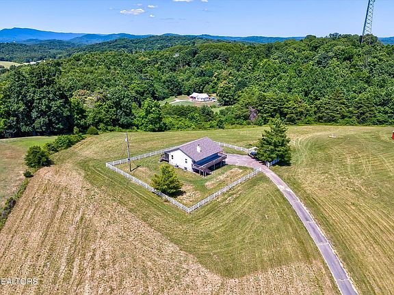 Buyers could not secure their financing. Their loss is your gain! Escape to this serene 10+ acre retreat nestled at the end of a cul-de-sac, offering expansive open space and breathtaking views of House Mountain and The Smoky Mountains. The land is predominantly level, cleared, fenced, and perfectly private. Recently renovated in a contemporary style, the home features an open floor plan with new flooring, kitchen, and baths. The main level includes three bedrooms, two full baths, a spacious living/dining/kitchen area, and convenient laundry facilities (washer/dryer included). The lot also benefits from a frost proof spigot connection next to the barn. The lower level awaits your personal touch and boasts new walls, flooring, electric fittings, a full bath, a generous bonus room, an office, potential craft/exercise room or fourth bedroom, additional storage, and a one-car garage. Enjoy the outdoors from the large open and screened porches, ideal for soaking in the scenery and observing wildlife. A well-maintained barn with four stalls and a hay loft adds to the property's allure. Ample parking and a newly poured concrete pad offer space for future expansion, whether for a garage or workshop. As an added bonus, a zero turn lawn mower conveys with the home. Additionally, the sellers are offering a tractor at an additional expense separate from the home price. For more information about the tractor, please contact the listing agent. Don't miss out on this exceptional property which is located miles away from the Holston River, 20 miles from Knoxville and 34 miles to the heart of Pigeon Forge schedule your viewing today!