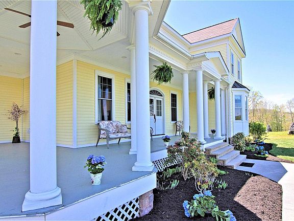 Elegance, Charm and character are all found in this impressive home located at 623 Cadle Ridge Road, Alderson, West Virginia. Also known as the community of Grassy Meadows, a picturesque area of Greenbrier County. This classic modern Americana Victorian Farmhouse is composed of four bedrooms, three full baths and three half baths with a total living space of 5,700 Square Feet. A grand Hallmark Home overlooking the Meadow River. Oak hardwood floors, granite countertops, crown molding, vaulted ceiling, balcony, entertainment space and more. Encompassing 53 acres of land, never ending views of the mountains, blue skies, wildlife, fresh air and nature. A lovely country estate, farm, event staging or anything you wish to dream. Perfect spot for a "Wedding Venue" Destination. Plenty of parking and wide-open spaces for guests. Also Included is the traditional "Country Red Barn" as functional as it is appealing - with Barn Loft, Concrete floor, half bath, outside shelter area, water and power. Luxury Kitchen with granite countertops, cherry custom cabinetry, Artisan copper sink, Pantry, Bosch dishwasher, Island counterspace with built - ins and seating. Featured is the classic AGA enamel over cast iron cookstove. Imagine family and friends gathered around the kitchen... easy conversation fills the air, mingling with mouth-watering aromas. Wine glasses are full and smiling faces abound. The AGA Classic cast-iron gas range is truly the heart of the home where cooking differently and living exquisitely create the sort of home that draws everyone near. Beneath the glossy enamel of the stove beats the heart of quality cast iron. This is what sets the AGA stove above all others. A unique temperature regulation system continually transfers heat to each oven and hotplate at precise pre-set levels while the cast iron maintains full heat retention. The efficient radiant heat and insulated design minimizes fuel consumption and creates optimal cooking conditions. Gentle radiant heat locks in moisture of every ingredient, thereby preserving flavor, nutrients and the integrity of the foods you love. Everyday cooking or the professional chef will appreciate the goodness. Enjoy sunshine and nature indoors and outdoors year-round. Central living space vaulted ceiling with sunburst window accent add to excellent views of the mountains. Appealing open floor plan with glass window panels and doorways create a stately wall of light leading to the cut stone veranda and gardens. Stone patio outdoor kitchen area offers quiet time or exciting space for entertaining guests. Stone accent throughout the garden area and the delicate garden gate staircase add character to an already charming expansive home. Outdoor living space creates a Country Villa effect and a status gardener's dream property. Views of the Little White Church on the hill across the meadows are of McElhenny Presbyterian Church a community Beacon for generations. Leef's Knob elevation 2,720 feet can be seen in the immediate left view along with various other mountain ranges in the distance. A short drive into the mountains will take you to the highest point in the area Keeney's Knob elevation 3,369 feet. For the outdoor all-terrain vehicle enthusiast the riding opportunities are open to side-by-sides, quads and dirt bikes to enjoy the country roads. Horseback riding is also a popular day trip into the nearby mountains on the West Virginia Country Roads. Whatever method you travel by or find your way these same Country Roads will take you back home to Almost Heaven in Grassy Meadows. Victorian Flair Octagon Gazebo porch design adds to the perfect balance of crisp clean lines and soft traditional timeless appeal. Southern living at its best. Tall porch columns invoke thoughts of beloved memories spending time with family and "front porch setting". Dining Room and front parlor entrances conveniently open to the Victorian porch.