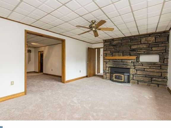 Truly one floor living at its best!!! Welcome to this 4 bedroom, 2 bath stone front ranch home. Enter into the large living room with a wood burning stove to keep you warm in the winter months. The formal dining room has a large storage closet with french doors leading into an expansive family room with a brick fireplace and sliding doors to access the level fenced in rear yard. Plenty of cabinet space in the updated eat in kitchen with tile flooring, trash compactor, range hood microwave and easy access to the laundry room. Freshly painted, new carpeting, replacement Anderson windows. This great home also has radiant floor heating, a large driveway and 2 sheds for additional storage. Easy access to shopping, West Chester Pike and the Blue Route.