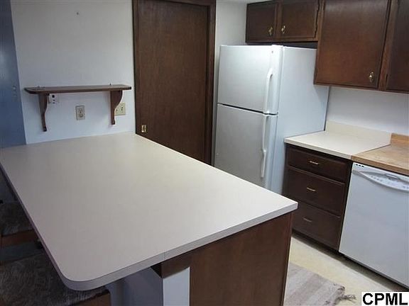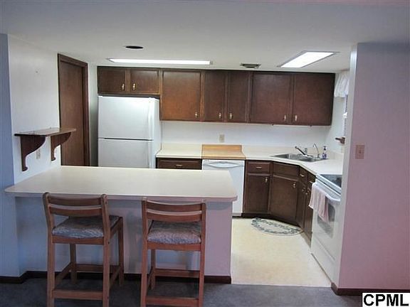 Great contemporary end unit Townhouse. Living Room features 2 story cathedral ceiling with ceiling fan, skylight and fireplace. Private patio off of the Dining Room and deck off of the Master Bedroom. Both have new oversized sliding glass doors. Breakfast bar in Kitchen & the appliances remain. 2 car carport with large storage closet. HOA fee includes mowing, snow-removal on Cedar Ridge and trash.