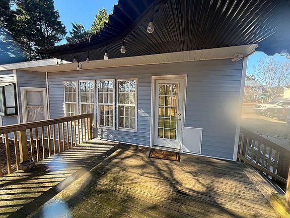 New roof, siding, appliances, carpet and complete interior paint; wood, laminate flooring in kitchen, large dining area and master bedroom , as well as hallways; large deck with partial overhead coverage for grilling and walking to large enclosed gazebo. Large storage unit in back yard. Corner lot.