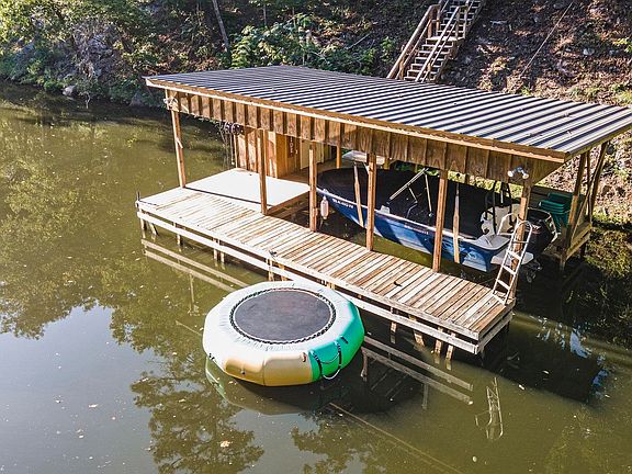 Looking for a waterfront property on Lake Mitchell that also has the amazing feel of being in the mountains? Then this is a perfect HOME for You! Privacy, Serenity, Water Views, Nature Views, Sunset Views, and so much more! Enjoy One Level Living, an Open Floor Plan, Split Bedroom design and lovely allergy free concrete flooring throughout. Kitchen has granite counters, stainless appliances, an island for extra seating and a pantry. Spacious Master Suite on Lake side with a walk-in closet.Lots of windows throughout for natural light.The Dining and Entertainment space can be carried out to the large deck that is Lake side.From the deck enjoy beautiful views of the Lake and the wildlife such as the Bald Eagles as well as other unique birds. Boathouse with electric lift for your boat storage. This home has been exceptionally maintained since it was newly built in 2021 and is Move In Ready! Central Access Internet is Available! Paved Roads all the way to the Property! Exceptionally priced!
