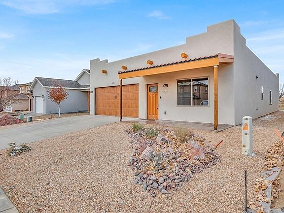 Come see this high quality energy efficient brand new home - a unique & stunning southwestern-style rancher on Cowboy Way! Simple, yet elegant, there is much to love about this home w/ its 3 bedrooms, 2 bathrooms & Great Room. The front exterior of this home is striking with its wood-toned garage door, taupe-colored stucco, sconces, leaded glass in the front door, wood corbels & hacienda-style front porch cover. The kitchen has lovely ivory-colored cabinets w/ black pulls, a built-in wine rack, a built-in microwave, & a pot-filler above the cooktop! Plus, there is an incredible 25 sq. ft. pantry to store food, countertop kitchen appliances & more! The primary bedroom has a large walk-in closet & a 3/4 bath with double sinks. Beautiful finishes include laminate flooring in the main areas, large-sized tile floors in one bathroom & the laundry room, carpeted bedrooms, contemporary black hardware such as door knobs & light fixtures, 4" knotty pine baseboard & wood doors. The highlight of this amazing home is its in-floor heat in the house & garage, w/ heat recovery ventilation; the mechanical for this is accessible in the garage. This local builder specializes in "green" building, and quality & attention to detail is notable throughout. Ceiling fans in each room. This new build has the unique added value of a finished landscape, complete w/ xeriscape in the front yard, a couple of deciduous trees, & a textured concrete patio & a lawn in the backyard. Schedule your showing today!