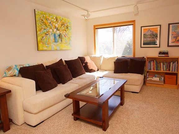 Warm, simple and sophisticated with a youthful edge, this functional home is enveloped in light and comfort. This immaculate, turn-key home offers a unique lay-out ready to entertain guests or bring family together. Step into the front door and relax in the beautifully sunlit living room or snuggle up with a good book next to the wood-burning fireplace. The open kitchen features plenty of cabinet space, tile backsplash, pantry and lots of counter room. Enjoy many family dinners in the attached dining area that showcases beautiful views out the front of the home. Also on the main level is a bright family/sun room and half bath. The stunning wood spiral staircase takes you upstairs to a large master bedroom with vaulted ceilings and roof top deck. A full bath and additional bedroom complete the upper level. Take that same spiral staircase to the basement that features a cozy sitting area with woodstove, 2 additional bedrooms with egress windows (1 no closet), full bathroom and laundry/utility room. The lower level also has an additional room that could easily be updated to a wine cellar or cold storage area. You will love the fenced backyard with patio, raised garden/flower beds and an additional single car detached garage with attic storage. Additional amenities include attached 2 car garage with gas heater, water softener, laundry chute and garage access from main level and lower level!! This home is located directly across the street from bike paths and steps away from parks and playgrounds. Dont miss out on this home!