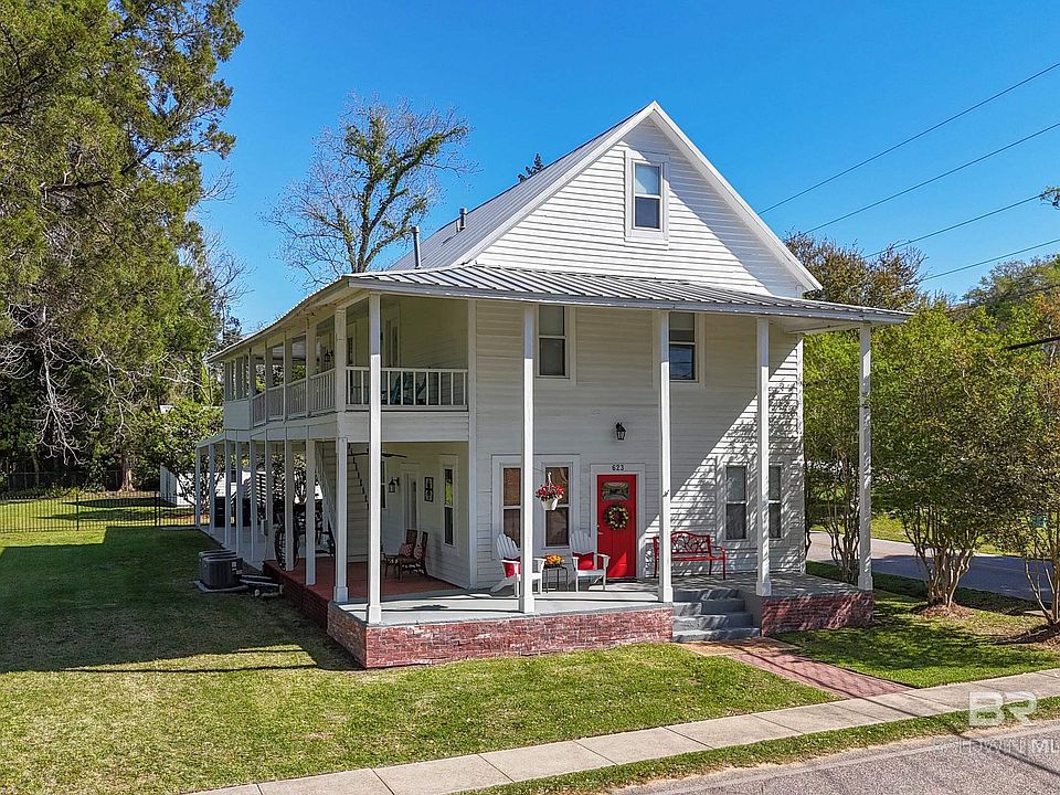 Welcome Home! Rare opportunity to own a piece of Daphne history and in the center of Olde Towne Daphne! Ideal location walkingdistance to restaurants. True historical landmark. Home is located on a corner lot w/so much to offer and charm. Your property features alarge workshop w/ fenced in yard space. Ideal wrap around porch and great space to start or end your day. As you enter your home youare greeted by your foyer w/restored pine flooring. Home features two living spaces on your main level. You're living spaces come withso much charm and great space for entertaining. Main level also features one full bathroom and office space. Off of you're living roomyou enter into your eat in kitchen. Your kitchen has been totally remodeled w/stainless steal appliances, gas range, walk in pantry,granite counter tops, counter top seating, and decorative backsplash. Your second level features three full bedrooms all with restoredpine flooring. Two full and updated bathrooms. Great balcony space off of your second level. Great zen space to take a moment in yourday or to enjoy your favorite book. On your third level you have a great bonus space. Can be used as a 4th bedroom, home gym, orguest suite. Home also features 2016 tankless gas hot water heater, 2016 HVAC units with gas heat. Windows and doors were replacedin 2016. 50 Year Metal Roof replaced in 2016. If you are looking to own a piece of history and not a cookie cutter home this is theproperty for you! Don't walk RUN to schedule your showing TODAY! Buyer to verify all information during due diligence.