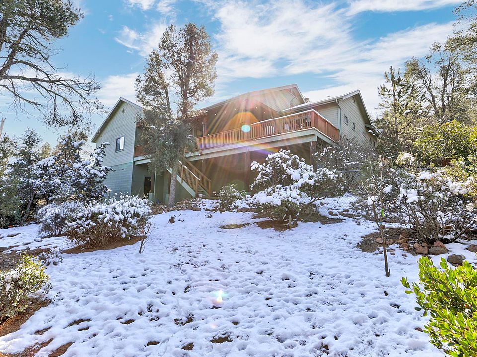 Make this beautiful home on .83 acres located in the Golden Frontier community your own! This single story home is move-in ready w/ vaulted ceilings, beautiful wood flooring & marvelous expansive rim views from the great room, master suite, dining room, guest room & deck! Appreciate a kitchen that will delight any chef w/ its sleek, stainless appliances, updated cabinetry, Granite counter tops & huge center island w/ lots of room for seating. The split floor plan of this home offers a private master suite which is a sanctuary unto itself w/ private access the patio & ensuite bath w/ dual sink vanity, snail shower & private commode room. Generous secondary bedrooms & an additional bathroom ensures your guests every comfort. Appreciate this quality-built home w/ RV parking & hookups!