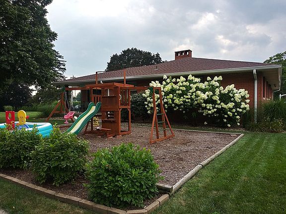 4 Bedroom 1.75 bath ranch style house. Move in ready. 1 block from pond on 623 E South St. Corner lot with playground, shed, and 2 car garage. Plenty of storage. 4th bedroom is on separate side of house and can act as a great guest room. Simple, yet beautifully landscaped yard. Wood burning fireplace in sitting room. Additional fireplace in basement. Painted walls and floor basement with separate storage area and plenty of space for a home gym, kids play area, or additional entertainment space. Great schools. New Roof and Gutters in 2017 (gutters run under ground in front and on east side of house) New flooring in kitchen New carpet in living room, hallways and 4th bedroom in 2021 Dewatering System Painted Basement Walls and Floor 2 Car garage with attic space Shed with locking Storm doors Newer landscaping in back Yard was built up in 2016 Wooden Swing Set and landscaping on east side added in 2017 Fresh paint New dishwasher in 2021 Stainless Fridge and Range Attic Fan 2 Porches Heated Garage