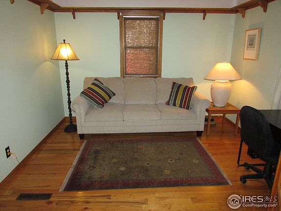 This charming 1930's bungalow is a short walk to downtown Loveland and neighborhood parks. Open floor plan w/ tile entry, skylight, hardwood floors, wood beams, knotty pine accents & gas wood stove. Driveway and rare, heated over-sized 2-car detached garage w/ workshop. New furnace, humidifier and central air! Fully fenced private backyard w/ flagstone patio, shed & dog run. Gardeners' dream w/fruit trees, perennials, grape vines and irrigated raised beds. This quaint property is one-of-a kind!