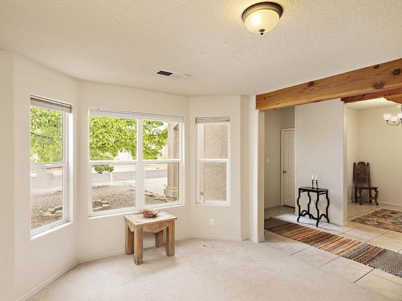 In the heart of Rio Rancho, you will find this lovely, spacious home in High Resort Village. Private primary bedroom & bath are located on the first floor with 3 more bedrooms and bath upstairs. A large family room with patio access perfect for entertaining. The large kitchen has a separate dining area as well as a formal dining/living area. Come see the vigas, corbels and so much more!