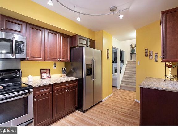 Welcome home! Desirable End-unit in the Hill Crest Community in Middletown Township. Spacious townhouse community with beautiful open space. 3 bedrooms and 2 1/2 bathrooms. Updated cherry cabinet kitchen with stainless steel appliances, granite counter tops, custom pantry cabinet and a view over the sink looking out into the woods. Dining room with chair rail, crown molding and fireplace and two large windows allow for extra natural light. Spacious family room with crown molding and a door to the large back deck. The location of the home has beautiful views of lush greenery. On the second floor, the master bedroom with updated master bath with upgraded shower with custom tile and huge walk-in closet. Two additional rooms, laundry area and hall bathroom complete the second floor. Finished WALK OUT basement with large storage room, additional closets for storage. Finished area includes another family room with new carpet and a BAR perfect for entertaining friends and family. Walk out of the basement on to the patio and enjoy the end unit privacy. Most private townhome in the community. One car garage on main level with access inside access. Second laundry in the basement perfect for pets or outdoor gear cleaning. End units have a 2 foot bump-out on the first floor compared to the middle units. Low HOA dues include lawn maintenance, snow removal, trash and common are maintenance. Award-winning Rose-Tree Media School district. Not Far from all the fun outdoor activities like Linvilla Orchards, Chester-Creek trail, Linvilla swim clubs and much more. Quick access to 95, 352 and RT 1.