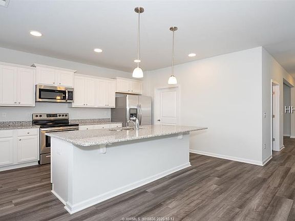 First floor with Durable Vinyl flooring throughout with a floating island topped with granite counter tops. Pristine Open Kitchen is equipped with a Stainless steel gas range, dishwasher, refrigerator & built-in microwave, flex room off of the foyer, Spacious Primary bedroom, an over-sized shower, double vanities & a walk-in closet! Pictures, photographs, colors, features, and sizes are for illustration purposes only and will vary from the homes as built. Virtual Appointments Now Available!