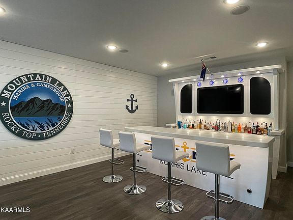 BACK ON MARKET DUE TO BUYER FINANCING ........ This home is an absolute MUST see and is selling mostly furnished! Lake front living at its best. Located at Mountain Lake Marina, this immaculate move in ready 3 level end unit offers an open concept main living level with breathtaking lake views. Kitchen has beautiful quartz counter tops, subway tile backsplash, soft close shaker style cabinets, stainless steel KitchenAid appliances, farmhouse style sink, pantry with deep shelving and a large peninsula perfect for entertaining. Living/dining area has a gas fireplace/tile surround, extra tall ceilings with lots of recessed lighting and glass doors/upper arched transom for lots of natural light. Door opens up onto a deck overlooking Norris Lake with expansive views of the Cove Creek channel. Master bedroom also has gorgeous lake views with an amazing ensuite bath with a large tiled shower/glass door and a beautiful free standing soaking tub plus a spacious walk-in closet with a laundry area. Upstairs is a large loft/bonus area that overlooks the living room. There are 2 spacious bedrooms, both with oversized closets plus a large unfinished storage area. Downstairs is a huge family room complete with a one of a kind lighted bar.........'Below Deck'. You have to see it to believe it. There is also a built in entertainment area with custom storage underneath. This spacious family room has french doors that lead to the concrete patio.