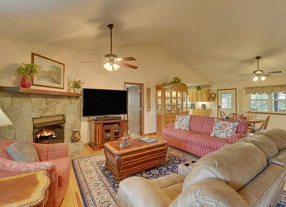 Pride of ownership shows in this charming, rustic four bedroom/three bath home with heart of pine floors and new heart of pine stairwell. All done right! Quartz counters, new tile in Master shower, and new roof. Covered deck, porch, stone walkways and dog fence. 2+-car garage, office, and large laundry room with built-in cabinets. End of the road privacy. Walk to Mayor's Park and downtown. Just outside city limits with lower taxes. Home was built in 2000 with tons of storage and quality construction!!