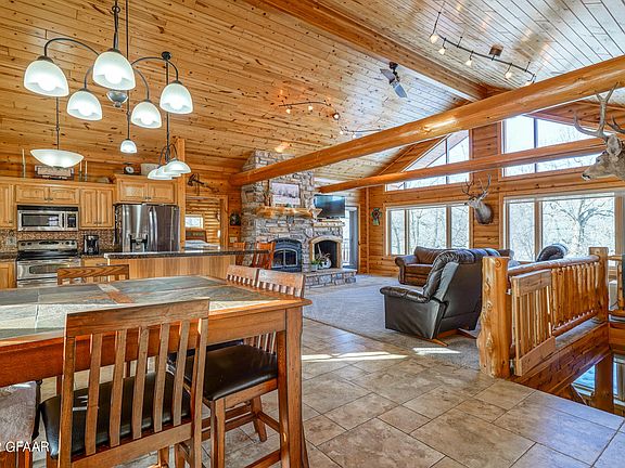 Beautiful 5 bedroom, 3 bath log home overlooking the Clearwater River! Open kitchen with large island, dining & living room with vaulted ceilings & beautiful log design accents. Features a wood burning fireplace to enjoy on those cold winter nights. Luxurious primary suite has a jetted tub. Attached double garage plus a triple detached, both have floor heat. This a must see. Give us a call today!
