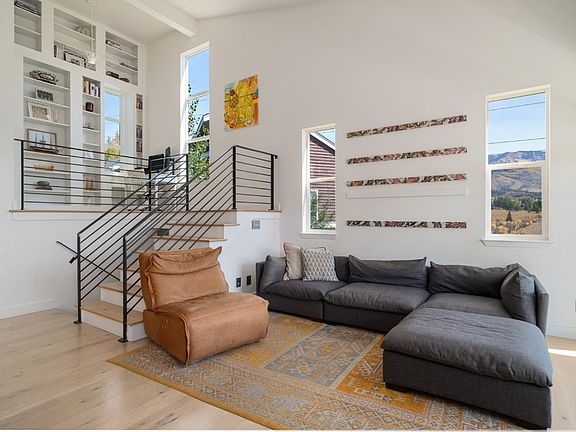 Completely redone from head to toe, this bright and airy three-bedroom Mountain Vista end unit with sweeping views of Mt. Werner, South Valley, and Emerald Mountain is truly exceptional. The home boasts a recently updated high end kitchen, solid white oak floors, custom metal railing that opens up to an expansive library loft area with a soaring custom bookshelf and designer lighting throughout. It offers abundant outdoor space with a private flagstone patio that backs up to coveted open space and Rita Valentine Park. Conveniently located 4 minutes to downtown, and about 5 minutes to the ski area, and at the end of the complex, it is quiet and feels very private. Perfect for families or a vacation home with easy access to all that Steamboat has to offer.