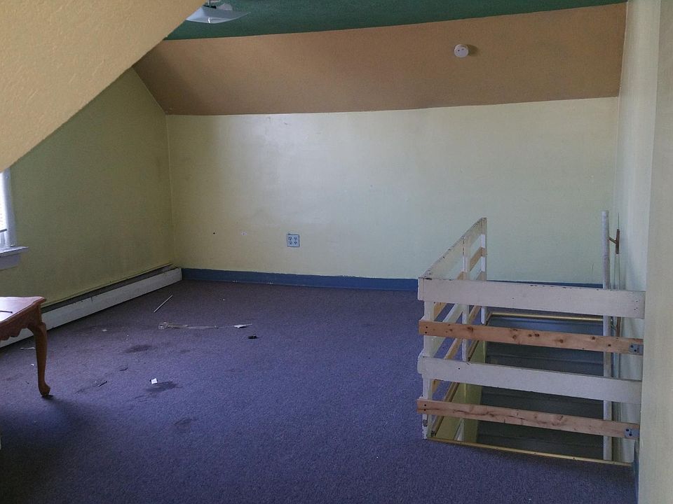Oversize 1 Bedroom Apartment spread over top 2 floors of house. Eat in Kitchen. Off Street parking in back. Tenant responsible for Gas and Electric. Landlord pays for Water and Sewer