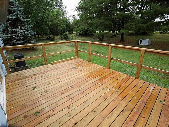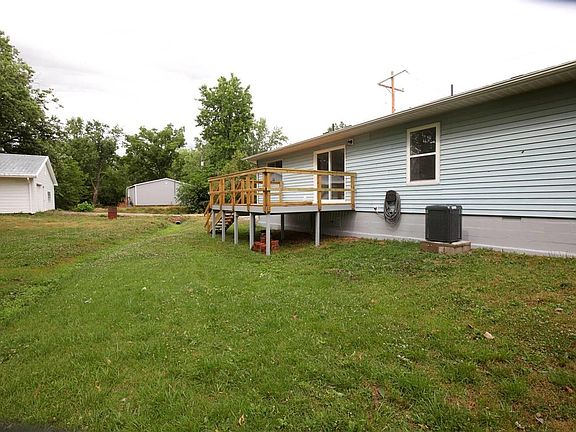 This spacious three bedroom home is situated on just over a half acre. The interior of this home has been completely remodeled this year. As you walk in you step into the living/dining which is the width of the whole house. You can see backyard through the sliding glass door and enjoy the outdoors on the updated deck. The floor plan has a split floor plan with two bedrooms with a Jack and Jill bath between. To the south side of the home is a beautiful new kitchen with a large island, all new cabinets and countertops. Appliance package is new and comes with the home. The second bath with double sinks is just off of the master bedroom. It also houses the washer/dryer area. The house is luxury vinyl flooring an some ceramic in the baths. Doors, ceiling fans, lights are all new. The roof was put on in 2023, Furnace and Air 95% is also new. Since you sit on a double lot you have lots of room. There is a large oversized garage with parking for two and a rec room, storage, etc.