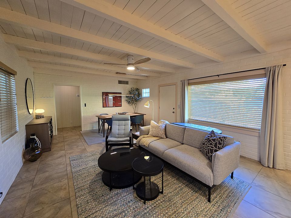 This fully furnished historic property in central Tucson boasts great character, high-quality features, and an expansive floor plan of just under 1000 sqft. Its multiple double-pane windows bring in great natural light while offering a quiet environment. The standalone unit is private and secure, conveniently located near the bus line on 5th St., the 3rd St. bike path, Reid Park, El Con Mall, shopping, restaurants, and medical centers. Equipped with dimmable LED light fixtures, central AC with Nest thermostat, an extra-large walk-in closet, low-care ceramic tile throughout, and berber-style wool carpeting in the bedroom. The home offers a cozy and safe environment that feels fresh and modern. The great room features a 55" wall-mounted HDTV above the fireplace that pulls down to eye-level. The unit's private inner courtyard can be enjoyed year-round. The home also boasts a full-size in-unit washer/dryer with grey water harvesting and free one-car carport parking. Water, sewer, garbage, and recycling are included. Resident(s) are responsible for electricity, gas, and wi-fi. Smoking and candle burning are prohibited. Up to one small pet is considered. One assigned carport space. The move-in costs are the security deposit and the first month's rent (can be prorated). Ideal resident(s) will have a minimum of a 3x monthly rent-to-income ratio. FLEXIBLE LEASE LENGTHS: $1,495/mo. for a 9 to 12-month lease, $1,595/mo. for a 4 to 8-month lease, $1,925/mo. for a 3-month all-inclusive lease.