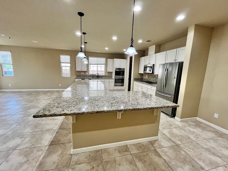Gorgeous, fully upgraded single-story ranch-style home situated on a desirable corner lot. This 4-bedroom, 2-bath property features an expansive kitchen with a large granite island, stainless steel appliances, and a double oven, perfect for cooking and entertaining. High 9-foot ceilings and abundant natural light create a bright, open feel throughout the home. The master bath feels like a private resort, featuring a relaxing bathtub to soak in after a long day and a separate walk-in shower for your steamy, spa-like retreats. The backyard is designed for low maintenance, making it easy to enjoy outdoor living without the upkeep. Conveniently located within walking distance to multiple parks and a highly rated K-8 school, one of the top schools in San Joaquin County. Don't miss the chance to make this beautiful home yours! Tenant is responsible for all utility bills. No smoking. No HOA.