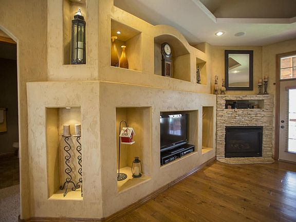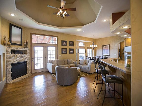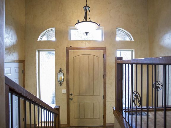 This impressive walkout basement home has custom features throughout! From the moment you walk in . . . gorgeous hand scrapped wood floors, tall ceilings & raised ceiling treatments w/ beautiful fixtures, custom cut out shelves w/ lighting, stacked stone gas fireplace, arched doorways, textured walls, surround sound, open floor plan to kicthen w/ tile countertops, 5 burner gas stove, double stainless convection ovens, pot filler, custom cabinets, master suite includes large walk in tile shower, 2 more bedrooms up w/ high ceilings, upgraded bowl sink in main bath, large living w/ wet bar down stairs, addl playroom, 2 more bedrooms, wonderful backyard complete w/fire pit, gardens, privacy fence, sprinkler system, front exterior has impressive stacked stone entry. This home is a must see!