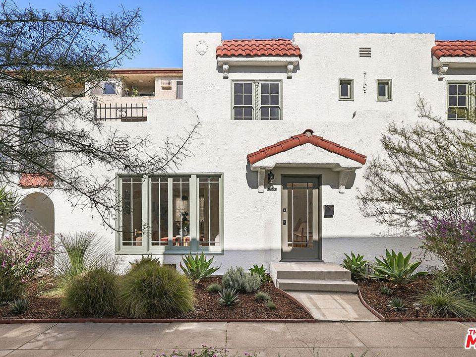 New Co-Ownership Opportunity: On a quiet street just off Melrose in Hancock Park, this 1926 Spanish two-story TIC has been impeccably restored to its original splendor, set within a designated Historic-Cultural Monument bungalow court. The residence has been revived with an eye for detail to highlight heritage charm and integrate modern updates, including refurbished original wood floors, tasteful built-ins, and recessed lighting. Oversized windows gather sunlight into the spacious living and dining area, where a decorative fireplace anchors the vintage-inspired design. The kitchen is tailored for design-savvy cooks, with a matte tile backsplash, hand-painted cabinetry, and a KitchenAid appliance suite including wine fridge. Upstairs, both bedrooms are filled with natural light, and the bath is exquisite with high-end fixtures. Surrounded by native California flora, the home enjoys a landscaped front yard. Amenities include smart lighting, AC/heat, and parking. Ideally located near The Grove, Tartine, HEIMAT & WeHo favorites.