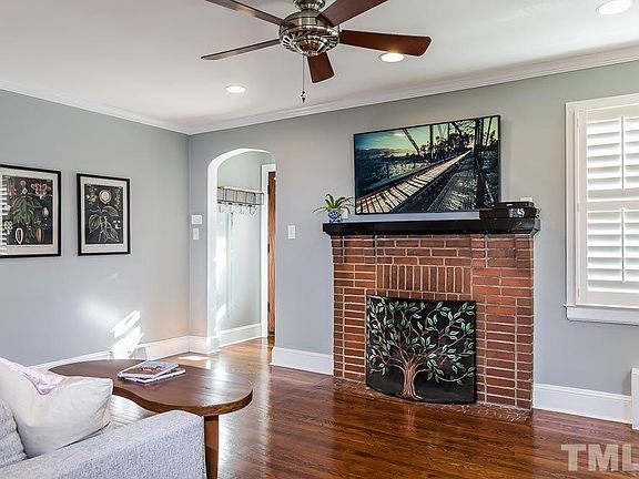 Charming Five points bungalow nestled on a professionally landscaped lot.Updated w/ custom stone work, solid wood front door w/ beveled glass & open floor plan. Hardwood floors and plantation shutters throughout main floor. Custom cabinets, granite, subway tile backsplash w/ glass accent tiles, GE Cafe SS app. 1st fl bath w/ Carrera marble, cast iron tub w/ tile. 3rd bedroom is upstairs w/ an open loft. Fabulous covered back porch, fire pit & custom storage building all within the private enclosed yard.