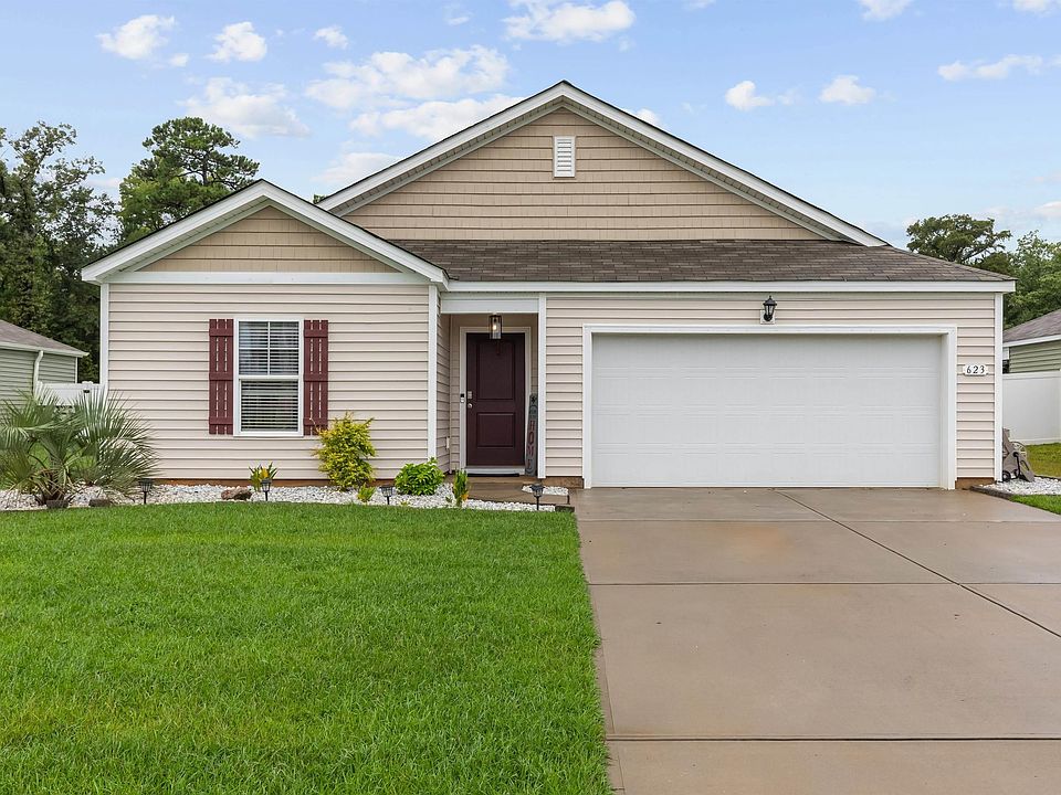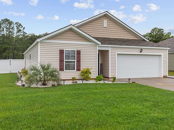 Welcome to your nearly new home in the highly sought-after Oak Estates East! This stunning property offers luxurious details and thoughtful upgrades throughout, including granite countertops, exquisite molding, new ceiling fans, updated kitchen and bathroom hardware, modern light fixtures, and lush landscaping. The spacious backyard, enclosed by a 6-foot privacy fence, is perfect for adding a hot tub, pool, or creating your ideal outdoor entertainment oasis. The gourmet kitchen boasts top-of-the-line stainless steel Whirlpool appliances, including a refrigerator, and a large island with a breakfast bar, perfect for casual dining. The open floor plan allows the kitchen to flow seamlessly into the main living area, making it ideal for entertaining. The master suite serves as a serene retreat, complete with a generous walk-in closet, dual vanity, and a spacious 5-foot shower. Additional amenities include a two-car garage and a state-of-the-art smart home system, which allows you to control the thermostat, front door light, lock, and video doorbell directly from your smartphone or via Alexa voice commands. Located just minutes from the beach, boat landing, shopping, and dining, this home offers a perfect blend of luxury and convenience. Don’t miss your chance to make this beautiful home yours, schedule your private showing today!
