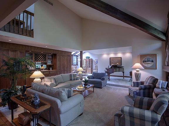Outstanding Rich Hersha design George Lengacher built contemporary home in Woodmont! Wooded cul-de-sac pond lot. Lovingly cared for one owner home. Easy access to the Fort Wayne trail system. You are immediately welcomed into this impressive open floor plan. Living room designed for entertaining has soaring ceiling and fireplace with Tim Doyle accent, open to music room and formal dining room. Breath taking office / library with built in desks and shelves. Large kitchen full of Grabill cabinets, featuring quartz countertops and built in stainless steel appliances. Gorgeous views abound from large family room! Fireplace with floor to ceiling stone work and also featuring renowned artist Tim Doyle limestone inset. Enjoy a spa day at home in the hot tub area with serene pond views. Unique stairway leads to atrium area also great for gallery for the art collector. Master bedroom oasis has 9x12 sitting area leading to private deck, fireplace, large bathroom and a walk in closet. 3 additional bedrooms. Laundry room with built in cabinets and desk is great for planning and or crafts. Loads of storage, 3 car garage plus equipment/tool room. Full basement with daylight windows is perfect for informal entertaining with game area, wet bar, cozy fireplace, and comfortable lounge area. Also large exercise or dance room. There is a small built in safe as well as a big safe that are included. 2017 tax bill is estimated based on appeal in uploaded documents.