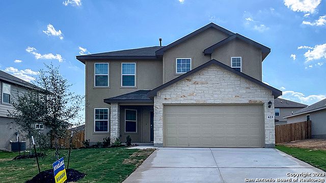 The Walsh is a two-story, 2323 square foot, 4-bedroom, 2.5-bathroom, layout designed to provide comfortable living. A spacious covered front porch opens into a beautiful formal dining room. Follow the entry hallway into a stunning open kitchen featuring stainless steel appliances, granite countertops, stylish white subway tile backsplash, spacious corner pantry, tons of cabinet space and a large eat-in breakfast bar. The kitchen opens to a spacious living room, complete with a stunning vaulted ceiling. The living room extends to a lengthy covered patio, perfect for outdoor dining or just simply keeping an eye on the kids while they play outside. The private main bedroom suite is located downstairs off the family room and offers dual vanities, separate tub and shower, ceramic tile flooring, water closet and unique, storage-friendly, walk-in closet with shelving. A half bathroom is located off the family room and an oversized utility room is located off the kitchen by the stairs. The second floor includes a spacious game room or office area, a second full bath, and three large secondary bedrooms with walk-in closets. You'll enjoy added security in your new home with our Home is Connected features. Using one central hub that talks to all the devices in your home, you can control the lights, thermostat and locks, all from your cellular device. Additional features include 3-sides of exterior masonry, 9-foot ceilings, 2-inch faux wood blinds throughout the home, luxury vinyl plank flooring in entryway, family room, kitchen, and dining room, ceramic tile at all bathrooms and utility room, pre-plumb for water softener loop, and full yard landscaping and irrigation.