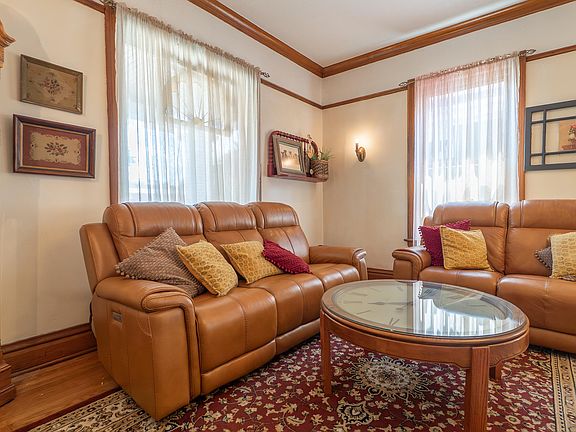 This lovely 3- 4 bedroom ALL BRICK home is located a short distance from Lake Michigan Beaches and in the heart of the downtown area, near the outlet mall, restaurants, library ,casino, zoo, and south shore double track train station.It is a historic home and has all its original charm! The owners have lived there over 40 years and have lovingly cared for it and updated it too! The home has 3 bedrooms, and the extra room used as a closet and laundry could be a 4th bedroom. Each bedroom currently has its own private bath. There are 6 bathrooms total with a powder room on the main, a 3/4 bath in the basement plus a small bath on the 3rd floor as well The home has so much character! The front porch is quaint with a swing that will stay. Hardwood floors and light fixtures are so beautiful.The living room is nice size with fireplace and pocket door leading to the ample dining room. The kitchen is updated and soooo pretty with its stained glass windows, and a butcher block to remain.The next level has all the sleeping rooms and a laundry room.The very top level has the recreation room with pool table , bar fridge, bar and stools and plenty of space to play games and gather.The basement level has access to the outside and has a bath and a small kitchen and an additional laundry.The backyard porch is an oasis and overlooks a storage garage. This home has a driveway which is unique offering offstreet parking. ALL THE MECHANICALS (FURNACE, ON DEMAND WATER HEATER,AND AC CONDENSOR HAVE BEEN UPDATED). NEW WINDOWS AND GUTTERS TOO !!!! You need to see this home to see all the extra little things it offers! This home could be your primary residence, a home away from home a great rental (so close to the beach!) Don't miss this opportunity. Its a beauty!