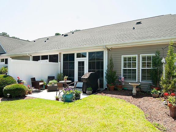Beautifully renovated lake front garden home offers carefree living in True Blue! Open-concept common areas plus 3 bedrooms, 3 full baths and a 1-car garage all on ground level! Wood-look flooring, plantation shutters and ship-lap walls and ceilings deliver tons of cottage charm throughout. Eat-in kitchen boasts KitchenAid appliances and clean, modern look. All-season porch and adjacent patio overlook tranquil lake setting. New roof in 2023. New HVAC in 2021. Ideal for year-round living or as a beach getaway or rental. HOA dues cover internet, cable, exterior insurance, trash, water and sewer. Community pools and tennis courts. Convenient access to the True Blue and Caledonia golf courses. The beaches as well as shopping and great local dining are nearby. Myrtle Beach is only a 30-minute drive, and historic Charleston is an easy day trip.