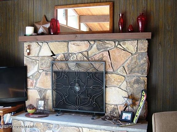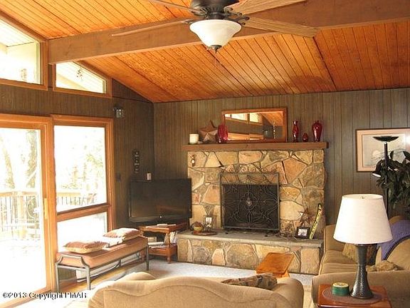 Vacation paradise for all seasons! Beautiful Lake Harmony only a few blocks away. Check out this fantastic treetop setting offering privacy and the beauty of the natural landscape in the summer, and in the winter, views of Big Boulder Ski Slopes. Two levels, each with a fireplace, hangout areas, and sleeping quarters. Very clean, in great condition, and has plenty of mountain charm. Fully windowed front brings the outside in, and the 24 foot deck expands your relaxation options in the warmer months. Easy to get to from Philadelphia via the NE Extension of the Turnpike, minutes from the new interchange. Route 80 is close by too for those coming from the New York City and New Jersey areas. Come and relax!!