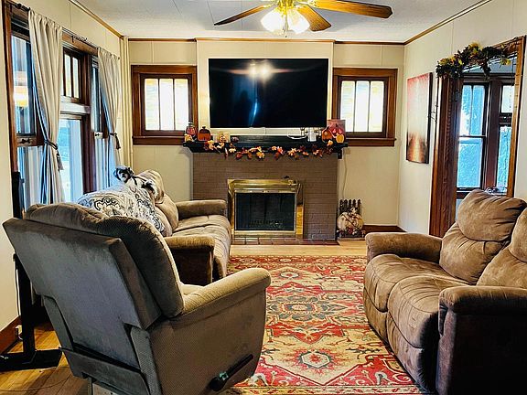 - Fireplace features: Glass Doors, Mantel(s), Wood Burning