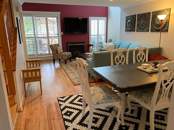 Spacious rowhome located in Historic Otterbein overlooking Wheel Park. The home includes hardwood flooring throughout, modern appliances in the kitchen, a balcony (equipped with outdoor seating and a grill), 4 bedrooms, 3.5 bathrooms, a finished laundry room and off street parking for two to three cars (single car garage and parking pad). Main entry level includes a kitchen, powder room, dining area, living area with a gas fireplace, dry bar with wine fridge and access to the balcony. Second level includes an ensuite master bedroom. The bathroom is updated with modern features and the room includes custom closets. A loft space on this level provides extra space for a home office or an additional living area. Third level includes two bedrooms and one full bathroom. Both rooms have large closets. The basement level includes one bedroom with custom cabinetry, a closet, and a newly renovated full bathroom. Garage entry and a newly finished laundry room are on this level. This is a coveted location in Otterbein! The main entrance to the home is on a park (no car traffic!). It is walking distance to Camden Yards (10-12 minutes), M&T Bank Stadium (10 minutes), University of Maryland (15-20 minutes), and the Inner Harbor (5 minutes). Street parking in area 8 is always available no more than a block away and includes after hours security in the vicinity. A one-year street permit is only $20 with the option to have multiple guest permits. Available June 1. One year lease. Rent does not include utilities. Pets may be considered with additional pet rent and/or non-refundable deposit.