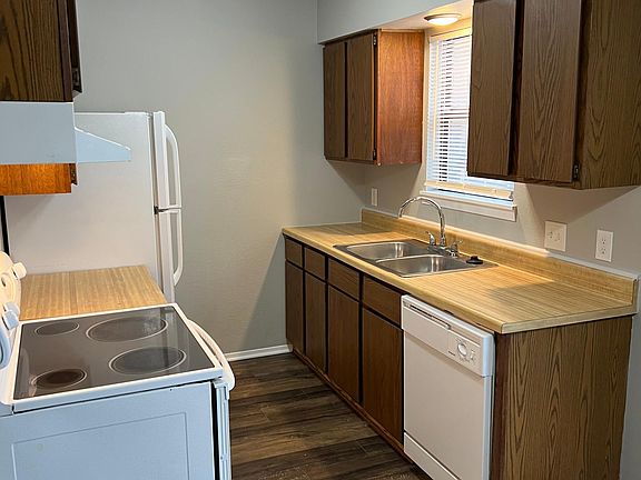 Large (2) bedroom apartment 950 SQ FT. Lower unit in a 4plex. Freshly painted throughout. Updated white trim and white woodwork. New wood vinyl plank in the kitchen and dinning room. Stove, refrigerator, dishwasher included. Central heat and air. Washer and dryer hook-ups. Tenant pays water, Gas and Electric. Landlord pays trash and maintains the yard. Easy access to Kellogg. Close to restaurants. Near Newman and Friends University's. Off street parking (2) spaces reserved and marked. No through traffic. Small dog will be allowed with a pet fee of $200.00 dollars. REQUIREMENTS: 1) Household income needs to be 3 x the monthly rent per month. (Verified). 2) Minimum of (2) years of rental history. Or leave a message here. Thanks Mike. Tenant will be responsible for gas,water,electric. The security deposit is $400.00. Smoking outside only. . There is off street parking for this apartment. (2) marked spaces. Great neighbors