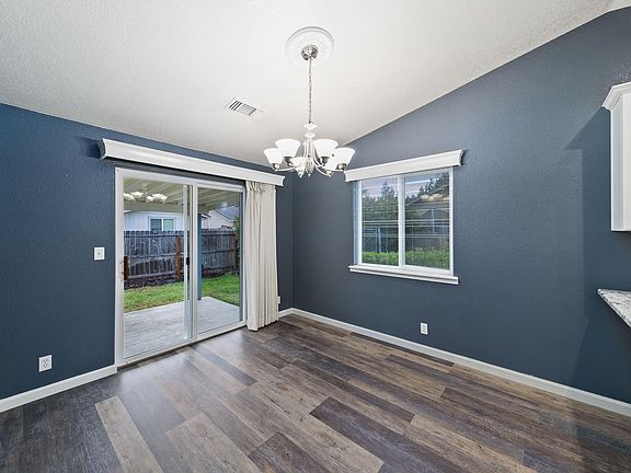 Style and Flaire! Beautiful single level home in wonderful neighborhood. Home has been recently painted throughout and faux Grey tone wood vinyl flooring installed which gives the home and up-scale look. You'll love the open feeling of the living room with it's special details and large windows. Dining room area with slider to backyard with lawn and two patio areas for entertaining and enjoying your morning coffee. Master bedroom with it's own master bath and walk in closet. Master has slider to backyard. Two car garage. Storage shed.