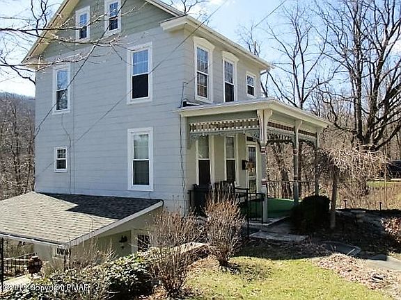 Lovely location in historic Jim Thorpe for this pretty single home featuring original gingerbread trim on the cornet front porch, lower private side covered porch leading out to beautiful large yard ( partially fenced). Mature landscaping-very nice. The interior on the main level features living room and kitchen with abundant countertop and cabinet area, stove, refrigerator and aspt. size dishwasher, the lower level features a charming and spacious family room that leads out to the side porch. The 2nd floor contains two bedrooms and full bath while still not he next level, add. living space-ideal for office, exercise room, studio-multi-purpose. The basement has washer/dryer, furnace and oil tanks on this level plus a full door walk out to the rear yard. The wonderful Switchback