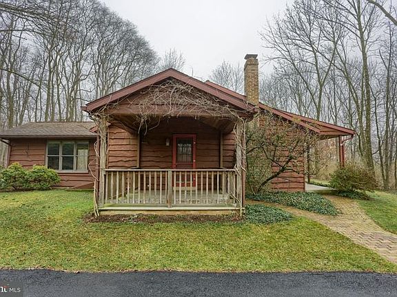 Picture the story-book cabin that's over the river and through the woods, wrapped up by nature's lush forest in a private hideaway. This home gives you that magical oasis but adds the features and modern necessities you expect with just a 1-mile drive to route 183 for all of your needs from beer and groceries to your vet right in town. As you arrive, an elevated driveway gives you an impressive reveal through the trees as you approach the large parking area flanked by an enormous shed for your tractor, snow blower, and kayaks if you'd like! With over 3 sprawling acres of forest surrounding every corner of your home, you'll never know you have neighbors! The walkway offers you entrance via one of two porches on the front or side of the home. The main porch entry brings you into the Kitchen with a spot to kick off those shoes. The Kitchen is bright with TONS of storage thanks to built-in wall cabinetry with a breakfast table between the Family Room and Dining Room. To the left, a gorgeous Dining Room is sure to impress guests with vibrant blue walls trimmed out with stained wood moldings and lots of windows. There's also a slider leading to a paver patio overlooking the backyard. The Family Room is cozy and cabin-like, with rustic wood plank walls and a wood burning fireplace commanding your eyes at the center of the room. You'll also find a door leading to the side porch of the home. Down the hall to the left is the full bath that has custom flocked wallpaper and a gorgeous granite top vanity with an upgraded oiled bronze faucet. Opposite the bath is the first bedroom where you will enjoy the lovely walk up attic access, in addition to another door to the side porch outside. At the end of the hall are the two largest bedrooms with great closets that have mirrored doors. The basement of this home is enormous and has taller than normal ceilings to give you an excellent opportunity for a finished recreation room or guest room! The basement has a rough in for a bathroom,