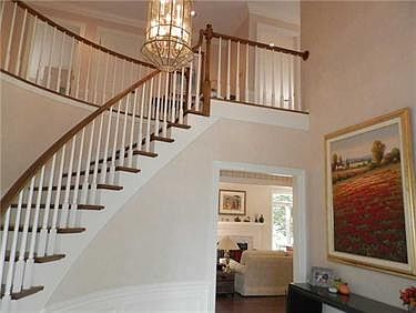 Beautiful home with great curb appeal. Lovely 2 story entry w/circular staircase. Updated kitchenwith with all new appliances. First floor master bedroom. Three bedroom suites upstairs with great storage. Finished lower level game room with log burning fireplace and kitchenette for great entertaining. game room has two glass double doors to the side yard. 5th bedroom and bath off of game room with windows.Beautifully landscaped with water feature. Very private and peaceful back yard.