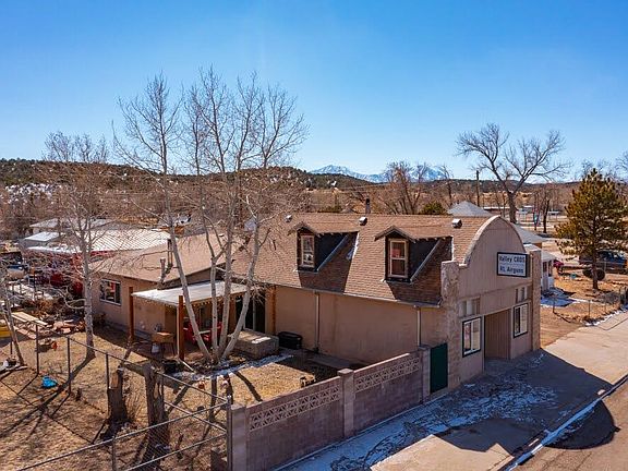 Large single family residence with commercial option, or use as 690sf of additional living space! Central Walsenburg location, less than half a block from City Park. Large lot includes private fenced side yard with covered patio, 2 car garage with shop, 2 sheds and plenty of off street parking with alley access and automated gate. Large kitchen with new vinyl flooring flows into living room with cozy wood stove, all recently repainted. Separate dining room (or could be made into 3rd bedroom) plus a small library/office. Main floor bedroom suite includes 5 piece bath with jetted tub. Upstairs bedroom with dormer windows, includes a 3/4 bath and separate powder room. Front room/retail space could be used as large family rec room or other. Partial basement includes utilities and storage.
