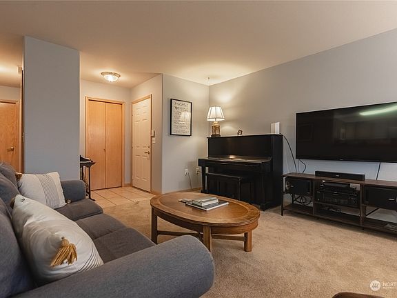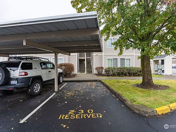Welcome home to Fir Ridge Condominium. Main floor easy living with no stairs! 2 bedrooms, 1 & 3/4 baths. Bright open floor plan with a Mt Baker view from the dining room. Conveniently located at the end of Horton Rd makes for a private setting. Enjoy the patio w/storage room that is bordered by a greenbelt. The primary bedroom has an en-suite bath and a full bath in the hallway. Central vacuum, covered carport parking, storage closet, all appliances included and is move-in ready.