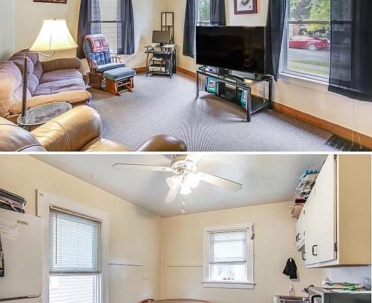 Excellent owner occupant or investment opportunity. Well cared for duplex...lower level is one bedroom, 1 full bath, upper is a 2 bedroom 1 bath. Both units offer eat-in kitchens that include stove and fridge, plus a generous sized living spaces. New windows, new siding, new cement drive, newer roof, updated electric, New Hot water heater, furnace and A/C in 2023. 2 sets of new washer and dryers in basement and lots off street parking. Big fenced yard!