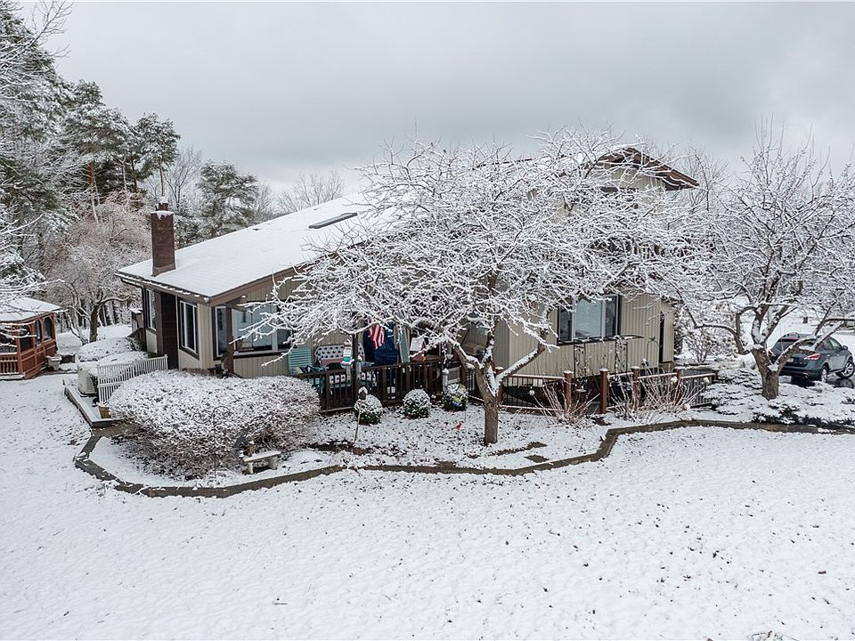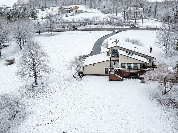 3 bedroom contemporary sitting on 2.7 acres of parklike grounds! private setting bordering village park and Wilkins creek! Owners have maintained and updated as needed, new windows, new roof and skylights, luxury vinyl plank flooring, family room with corner fireplace, on demand hot water, Generac generator, private decks off the beds, gazebo, poured walls in basement extra high! Lots of space and half mile to Conesus lake or village and schools. square footage was taken from appraisal 2023