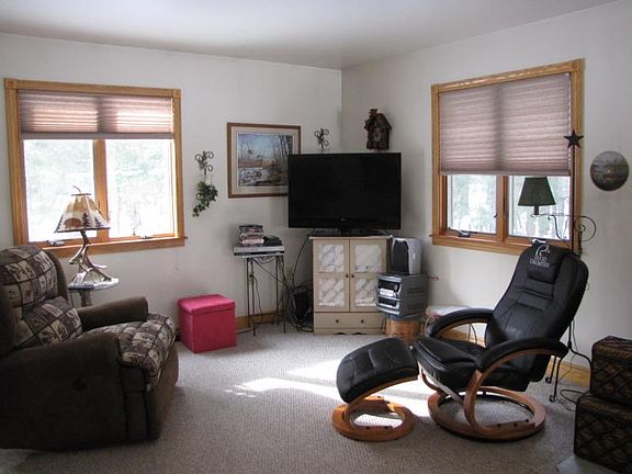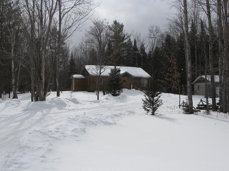 This cabin in the woods, on 20 acres is looking for someone to call it home. IT is a great place for hunting, enjoying the peace and all that nature has to offer. Plenty of ORV trails near by for those play toys. This home offers 2 full bathrooms, 2 bedrooms, open kitchen, dining room and living room. There is a deck off the back of the Livingroom. You will find a corn/wood pellet burner in the living room. There is plenty of storage in the partial quadlock basement (poured insulated walls). Main floor laundry. Need more storage, check out the 16x24 +/- shed with electricity. Staying is a trailer 18x16 +/- that holds up to 4 snowmobiles or what ever you want. Come check out this cute cabin, whether you are downsizing, starting out, or just need a get away. Call for your showing today.