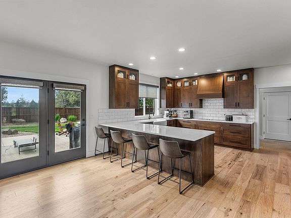 Prepare to fall in love with this stunning farm property! It's everything you're looking for - a gorgeous, luxury, custom farmhouse home with breathtaking, pastoral and kitchen window views of the snow capped Cascade Range. This property includes a sizeable workshop with RV parking and ADU potential. Additionally, you'll find almost 4 irrigated farm acres, full fencing, and a pond. Other highlights: paved driveway, farmhouse front porch, back yard paver patio with hot tub, and garden shed. The NEWLY remodeled home boast light and bright quartz countertops with brand new beautiful dark wood cabinets. Hard wood floors through out with tile back splash in kitchen and bathrooms. This dream property is a must see and a rare find in this very DESIREABLE area of SW Redmond- You'll find you won't want to walk away!