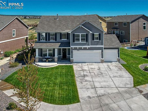 Expansive Primary Suite | Gourmet Kitchen | Pikes Peak Views | Meticulous Yard | 3-car garage | Quiet cul-de-sac. Look no further! Tucked away in the sought-after community of Wolf Ranch just minutes from multiple parks and schools, this 3BR/2.5BA, 3,000+sqft residence delivers the ultimate lifestyle of comfort and style. Bursting with a welcoming vibe, the fabulous home delights the senses with luxury vinyl plank floors, an open concept layout, ample natural light, design-friendly color palette, spacious living room, and an elegant formal dining room boasting a stylish Edison-inspired chandelier. Explore the depths of your culinary talents in the gourmet kitchen, which has stainless-steel appliances, granite counters, gas range, double wall ovens, 42” cabinets, NEW cabinet hardware, Pinterest-perfect walk-in pantry, NEWER dishwasher (2023), breakfast bar, and a breakfast nook. Unparalleled entertaining possibilities are found in the fenced-in backyard. Ideal for parties, the outdoor space impresses with glorious views, full house-length concrete patio, and NEW verdant sod (2024). Equally charming and blissful, the upper-level primary bedroom has an enormous walk-in closet, modern ceiling fan, and a spa-like ensuite with a NEWER sliding farmhouse door (2023), ceramic tile flooring, soaking tub, dual sink vanity, water closet, and a separate shower. Two extra upper-level bedrooms each enjoy a walk-in closet and ceiling fan. Ensuring multigenerational versatility, the upper-level includes a sprawling loft and a full bathroom featuring an oversized storage vanity and a private room for the shower/tub combo and toilet. Other features: 3-car garage, 2nd floor laundry, mudroom, cul-de-sac lot, NEST thermostat, upgraded fans and lighting (2024), easy access to Air Force Academy and all military bases, near shopping, hospitals, trails/open space, entertainment, and I-25 (quick commutes to Denver or Downtown Colorado Springs), and more!