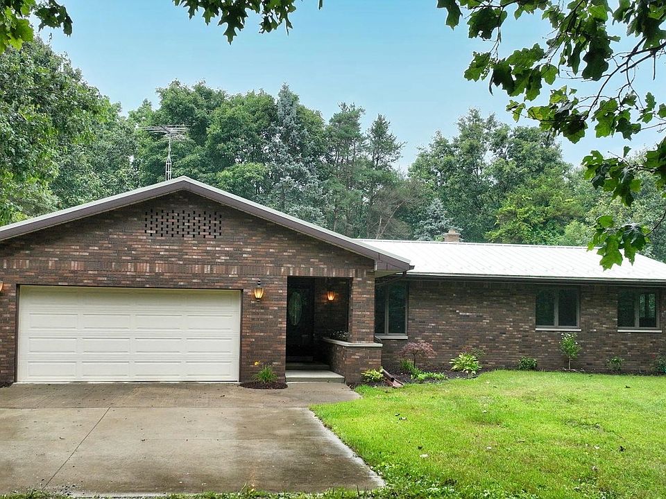 This all-brick ranch sits nearly 500 feet from the road in a private wooded setting and offers over 1,900 square feet of comfortable living space. Loved by the same family for nearly 50 years, this home features 3 spacious bedrooms and 2 full bathrooms, with freshly painted interiors and beautiful hardwood floors throughout. The large family room, with its cathedral ceilings and a stunning natural stone fireplace gives it that up north feeling. High quality Anderson windows throughout, the durable steel roof and a whole house generator ensure peace of mind. Modern updates include new lighting, a newer furnace, and newer appliances. This property is a true retreat, blending tranquility with modern convenience.