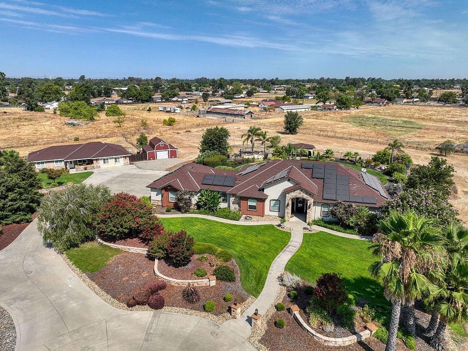 2 Custom Single-story Homes on 3 acres & a barn. Amazing Solar Efficient home with 91-panels. Home is secured by a electric gate shared with 2 other homes. Back of property is fenced. Room for animals Perfect for multi-generational living or rental income. The main house features a great room, gourmet kitchen with granite counters, hardwood cabinets, and beautiful solid wood doors throughout. The primary suite boasts a sitting area, double-sided fireplace, and spa-like bathroom. Enjoy a theatre room with built-in cabinets and eight theatre chairs or could be converted to another bedroom. The guest bedroom includes an ensuite bathroom. Amazing craft/laundry room has extensive storage & counterspace. There is an oversized three-car garage & the property has room for RV parking and plenty of parking for entertaining. The ADU is has been updated with fresh paint and new laminate flooring. It has five bedrooms and three bathrooms. Great room concept with a kitchen that opens to the family room, featuring a dining bar and sitting area. There is a koi pond with custom Rock boulders surrounded with an iron gate. There is also a custom Stucco Pergola where you can sit and enjoy beautiful views. Easy access to freeways. Contact today for a viewing.